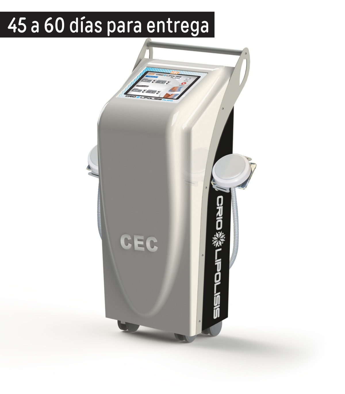 Equipo de criolipólisis con 2 aplicadores abarcativos para zonas de adiposidad localizada. Gabinete de pie. Pantalla táctil 9.7″.
